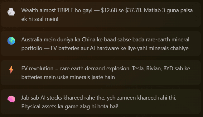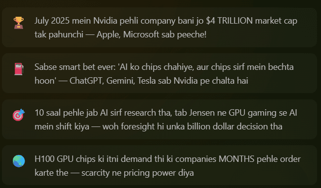 Yeh sab ek cheez zyada the — future ke liye positioned. Jab duniya ne AI wave dekhi, inke paas already shares the, companies thi, aur products the. Isliye jab tide aaya — toh yeh sabse pehle upar uthe!