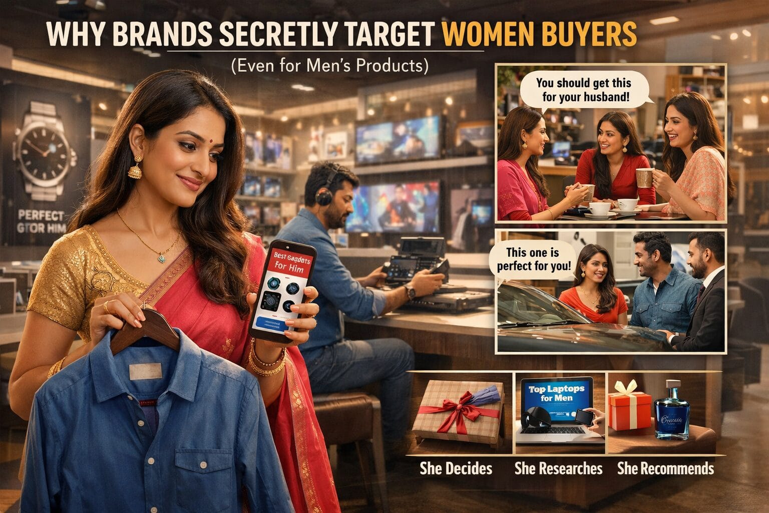 - Aurat sochti hai: “Yeh usse special feel karaega? Woh khush hoga? Brand achha hai? Log kya sochenge?”